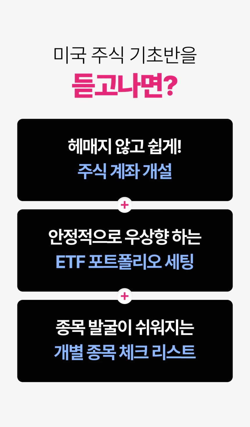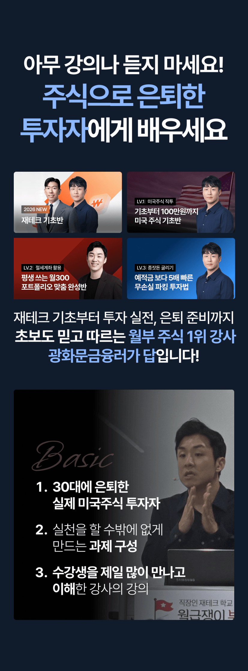 '나는 주식 초보다'라고 하시면 고민 없이 [미국주식 기초부터 백만원까지] 강의부터 수강하시면 되겠습니다!