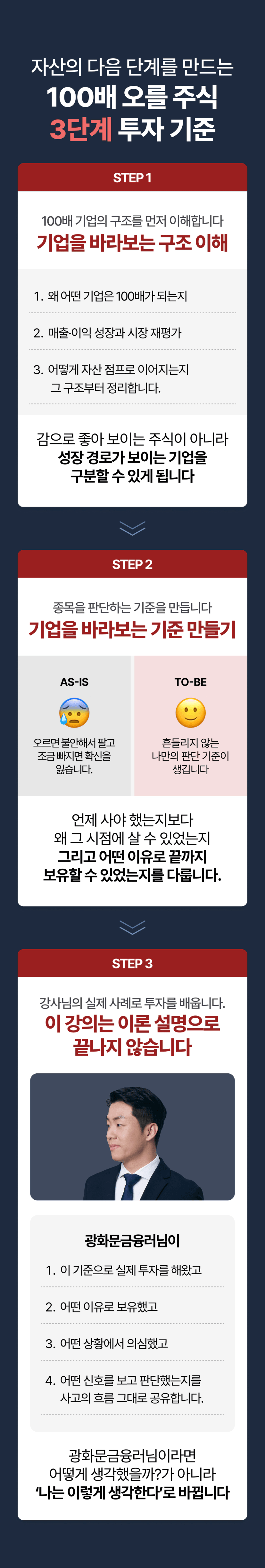비교적 큰 목돈(목돈의 기준은 내 기준으로 3년동안 모을 수 있는 돈을 기준으로 합니다)을 운용할 때, 최대한 손실 없이 운용할 수 있는 투자법을 배우게 됩니다. '스펙주'라고 하는 특정 주식에 대한 지식을 배우게 되는데, 역시 기초 내용이 없다면 강의를 100% 소화하시기에 어려울 수 있습니다.