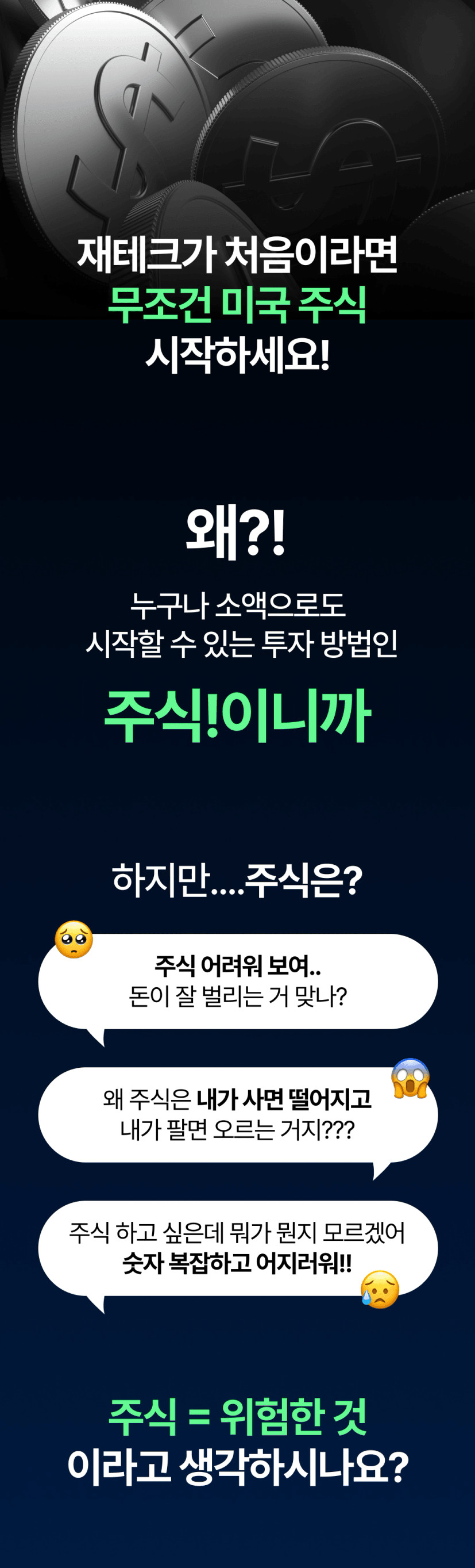 '나는 주식 초보다'라고 하시면 고민 없이 [미국주식 기초부터 백만원까지] 강의부터 수강하시면 되겠습니다!