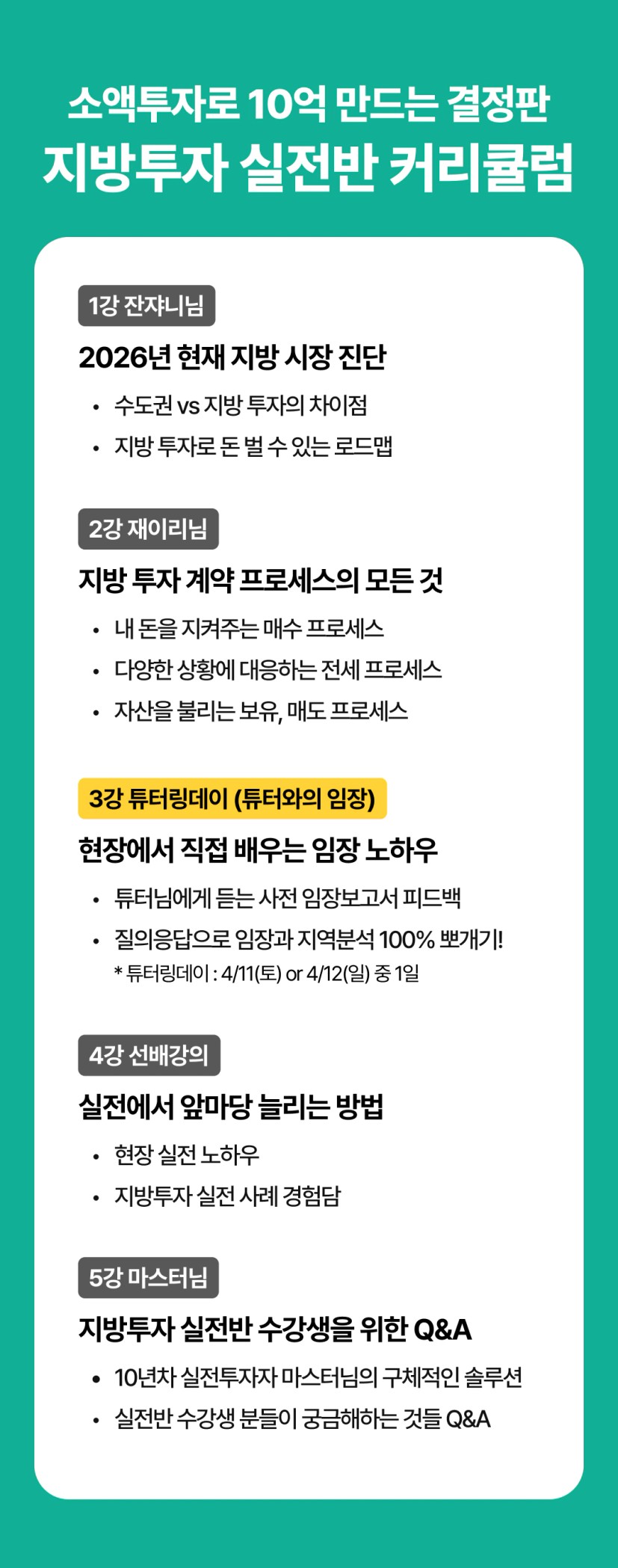 열반스쿨기초반 + 열반스쿨중급반 + 실전준비반 + 지방투자 기초반