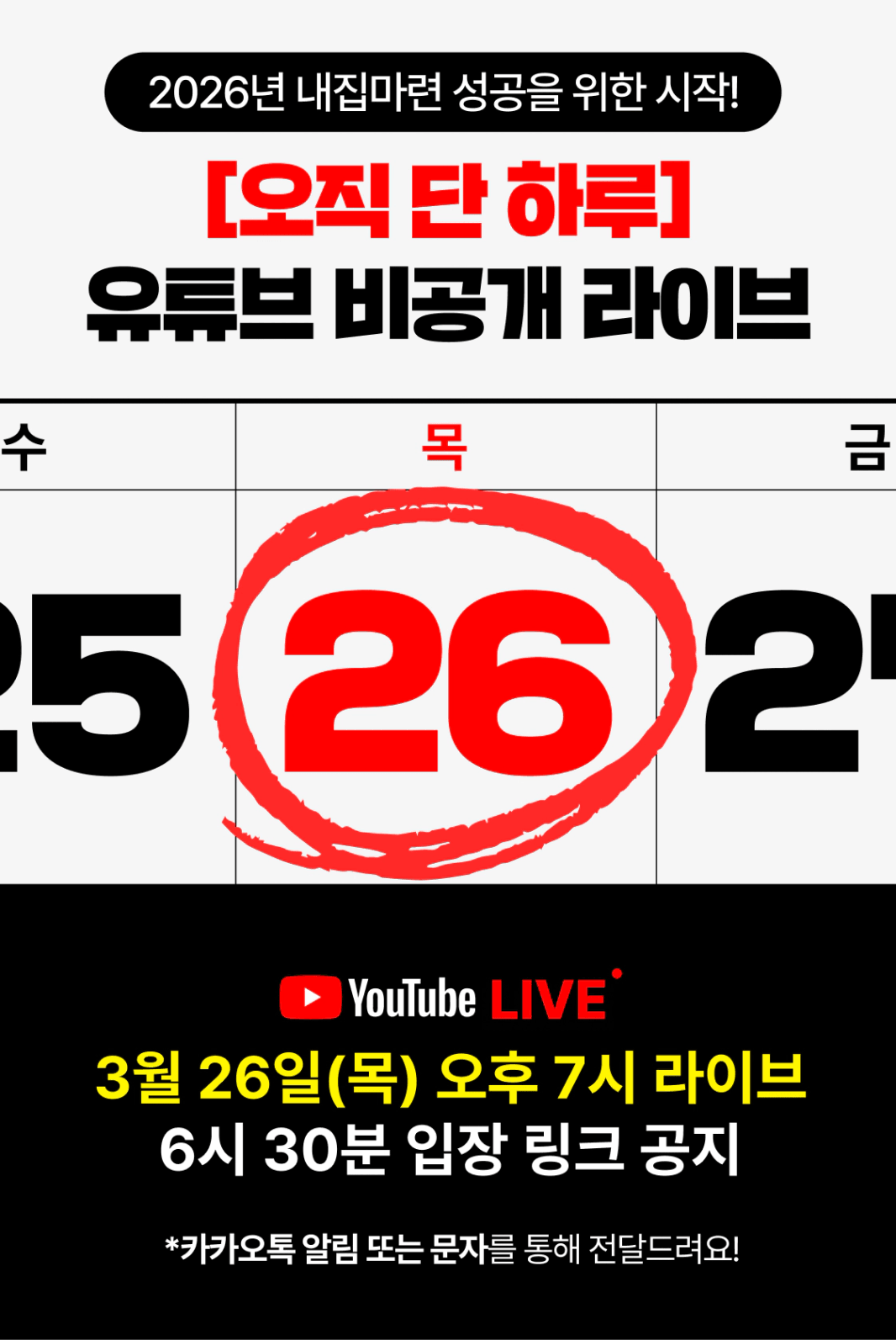 ⇢ 전국민이 내집마련 하기 전에 반드시 봐야 할 단 1개의 영상 [보러가기]