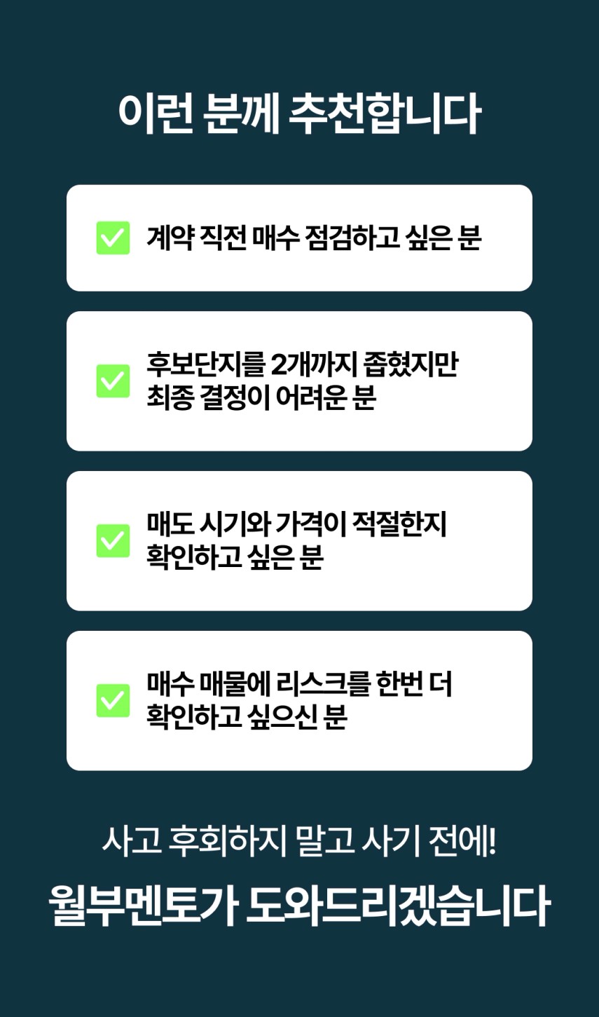 해당 지역과 단지의 가치도 듣고, 부모님과 사는 집이 양도 또는 집을 담보로 하는 대출계획이 없고, 제가 아직 1호기를 준비하는 것이기 때문에, 당장 세대주 분리를 위해 나가지 않아도 된다는 것도 알려주셨고, 조건 조율하는 것과 이 단지를 투자하지 않을 때의 행동지침도 알려주셨습니다.