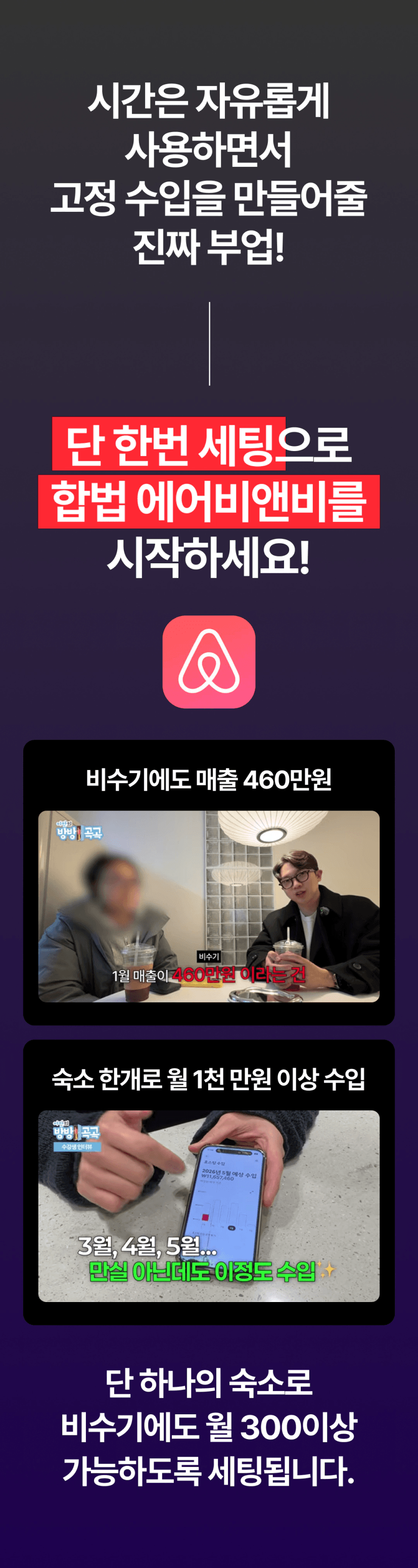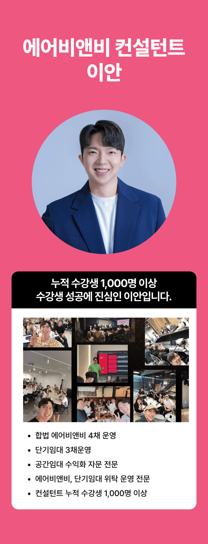 - 누적 수강생 1,000명 돌파 (실전 기반 에어비앤비 가이드)