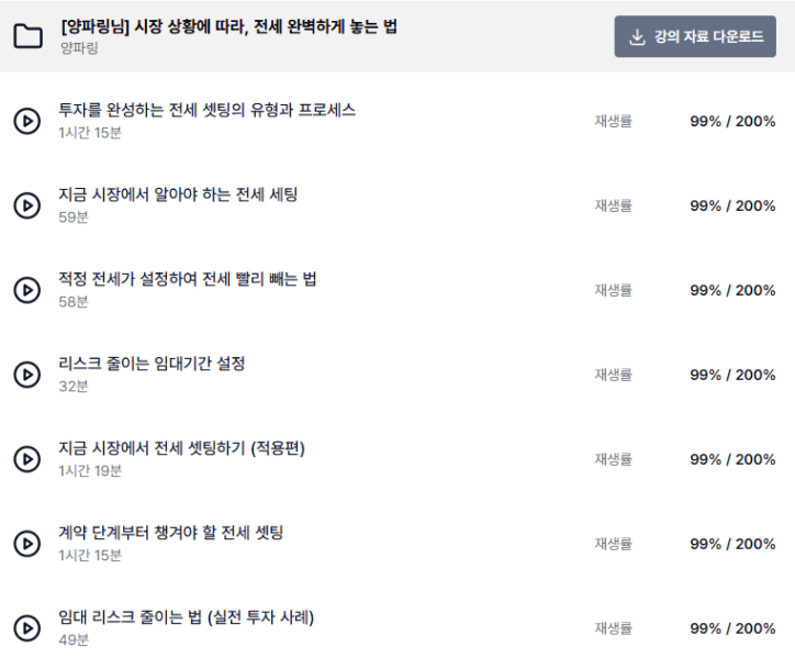- 교재를 다운로드한 상태에서 환불을 신청할 경우, 교재가 다운로드된 챕터를 100% 수강한 것으로 간주합니다.