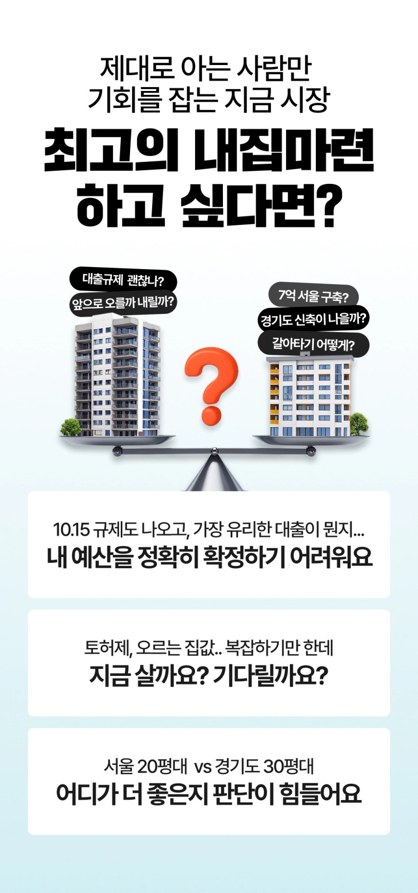 그래서 저는 5년, 10년 후에도 ‘자산 가치도 있으면서 살기 좋은 내 집’을 갖는 전략을 알려드리는 것을 목표로 합니다.