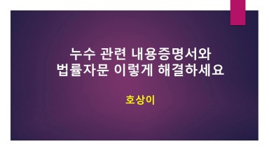 누수 관련 내용 증명서 와 법률 이렇게 활용하세요 [호상이]