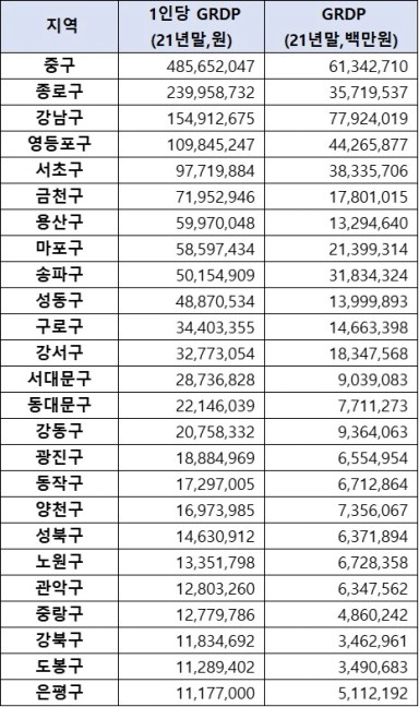 ☆ 서울시 25개구 GRDP자료 (경기도 자료 추가) ☆