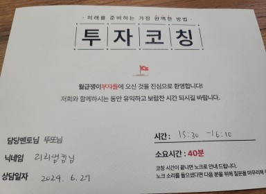 [리치샘킴] 투자의 명확한 방향성 설정을 위한 투자코칭 후기(With 뚜또님)