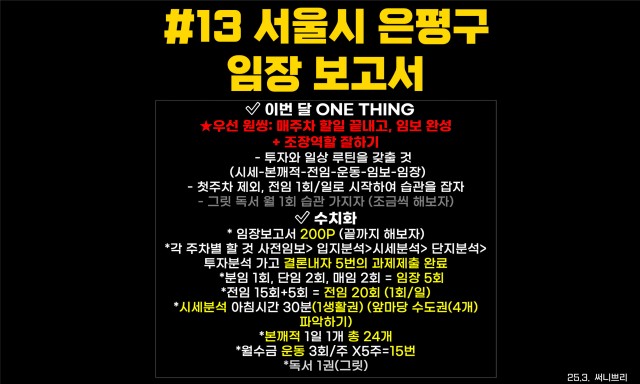 2주차 권유디님 강의후기 : “ 이번 실준반의 원씽은 임보의 완성! ” 적용한 것 - 유디님의 강의교안의 임보의 목적을 임보에 그대로 적용! - 그동안 해왔떤 장표목적, 자료해석, 내 생각, 궁금증 순으로 임보를 써왔는데, 장표의 목적이 더 명확해졌다. 새로 알게 된 것 1) 입지분석 각 방법 목적 명확히, 입지 다음 단계, 호재를 정리할 것(= 2) 그동