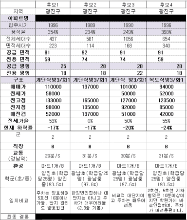 [내집마련 중급반 4기 74조 유긍정] 너나위님 1강 과제 내집마련 단지리스트~~!!