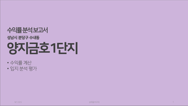 성남시 분당구 수내동 양지금호1단지아파트 수익률 분석 보고서 [열반스쿨 기초반 65기 54조 송파동지구대]