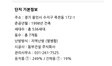 수지구 죽전동 죽전동부센트레빌 아파트 수익률 분석 보고서 [열반스쿨 기초반 65기 99조 고흥산유자차]
