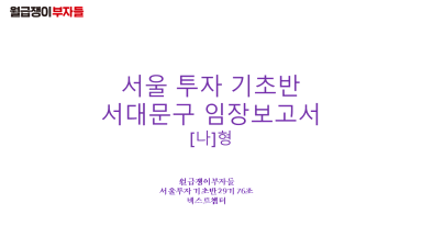 서울시 서대문구 임장보고서 [ 서울에등기7고 자산6배불릴조 스네일수현 ]