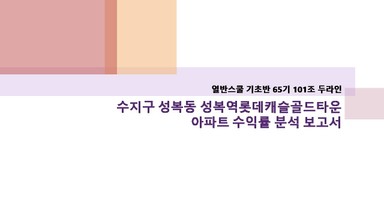 수지구 성복동 성복역롯데캐슬골드타운아파트 수익률 분석 보고서 [열반스쿨 기초반 65기 101조 두라인]