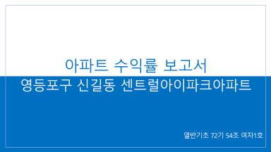영등포구 신길동 센트럴아이파크아파트 수익률 분석 보고서 [열반스쿨 기초반 72기 54조 여자1호]