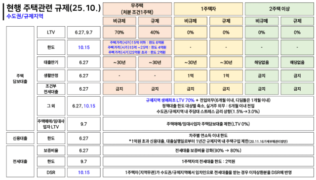 현행 주택관련 규제에 따른 최신 사항 정리(LTV, 한도, 전세대출, 규정 등)_2025년 10월 기준
