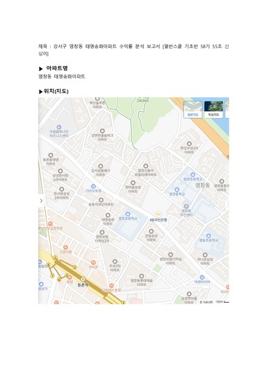강서구 염창동 태영송화아파트 수익률 분석 보고서 [열반스쿨 기초반 58기 55조 신싱이]