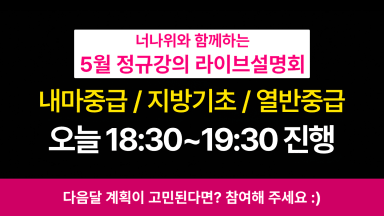 (중요) 4.30(화) 오늘 밤 오후 6시 30분 "5월 정규강의 너나위와 함께하는 깜짝 라이브"