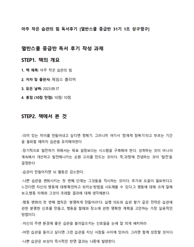 열반스쿨 중급반 '아주 작은 습관의 힘' 독서 후기 [열반스쿨 중급반 31기 1조 상구잼구]