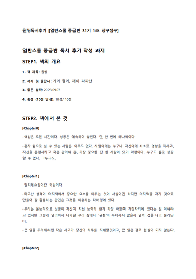 열반스쿨 중급반 원씽 독서 후기 [열반스쿨 중급반 31기 1조 상구잼구]