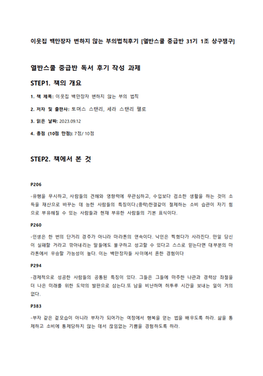 열반스쿨 중급반 이웃집 백만장자 변하지 않는 부의 법칙 독서 후기 [열반스쿨 중급반 31기 1조 상구잼구]