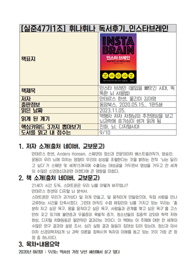 [실준47기1조 휘나휘나] 인스타브레인 독서후기