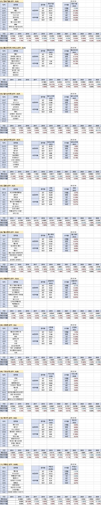미국주식 11개 섹터 TOP10 배당금과 배당성장률, 배당수익률