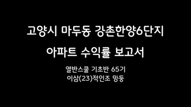 일산동구 마두동 강촌한양6단지 수익률 분석 보고서 [열반스쿨 기초반 65기 23적인조 망둥]