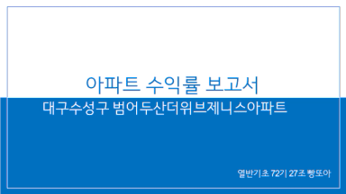 수성구 범어동 두산 위브더제니스 아파트(열반스쿨 기초반 72기 27조 빵또아)