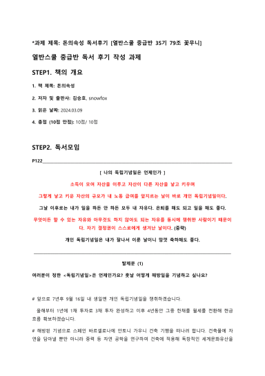열반스쿨 중급반 돈의속성 독서 후기 [열중반 35기 79조 꽃무니]