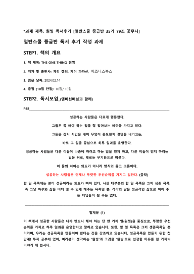 열반스쿨 중급반 원씽 독서 후기 [열반스쿨 중급반 35기 79조 꽃무니]