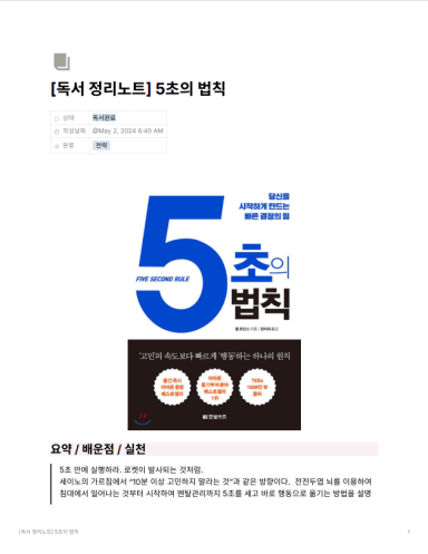 [독서 정리노트] 5초의 법칙