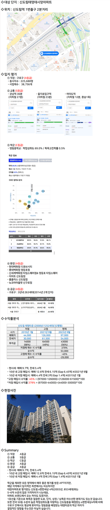 구로구 구로동 신도림태영타운 수익률 분석 보고서 [열반스쿨 기초반 66기 45조 송나무]