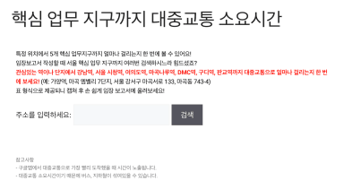 역, 단지에서 핵심 업무지구 5곳까지 대중교통 소요시간 한 번에 확인하세요!