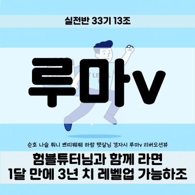 [실전33기 13조 험블튜터님과 함께라면 1달만에 3년치 레벨업 가능하조_루마v] 4강 수강후기