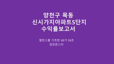 양천구 목동 신시가지5단지 아파트 수익률 분석 보고서 [열반스쿨 기초반 68기 58조 임장몬스터]
