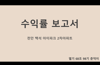 천안시 백석동 아이파크 2차아파트 수익률 분석 보고서 [열반스쿨 기초반 68기 98조 춘덕이]