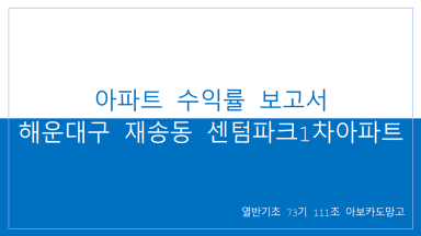 해운대구 재송동 센텀파크1차 아파트 수익률 분석 보고서[열반스쿨 기초반 73기 111조 아보카도망고]
