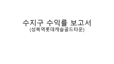 수지구 성복동 성복롯데캐슬골드타운 아파트 수익률 분석 보고서 [열반스쿨 기초반 72기 88조 파쿠2]