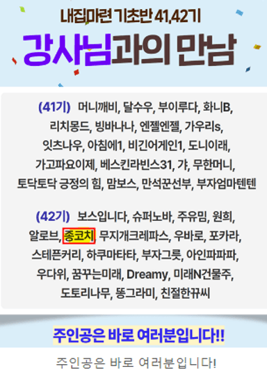 내집마련기초반 강사와의 만남 후기 [내마42기 강남삼9에 손품8아 등기치러 가자! 종코치]