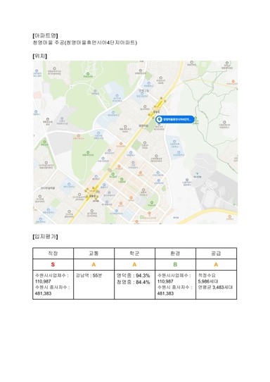 수원시 영통구 청명마을 주공아파트 수익률 분석 보고서 [열반스쿨 기초반 68기 92조 레몬쿠키]