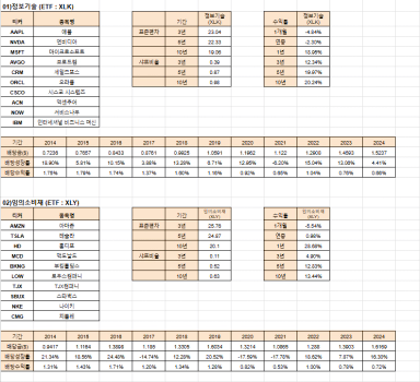 [미국주식기초반-연유hope] 미국주식 <정보기술/임의소비재> 섹터 TOP10 배당금,배당성장률,배당수익률