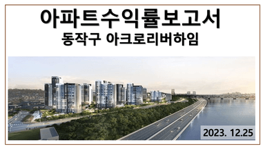 동작구 흑석동 아크로리버하임아파트 수익률 분석 보고서 [열반스쿨 기초반 70기 20조 슬기로운꼬꼬댁]