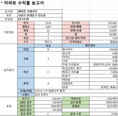 동대문구 전농동 레미안크레시티 아파트 수익률 분석 보고서 [열반스쿨 기초반 68기 78조 노란귤]