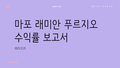 마포구 아현동 마포래미안푸르지오 수익률 분석 보고서 [열반스쿨 기초반 70기 연보라우유]