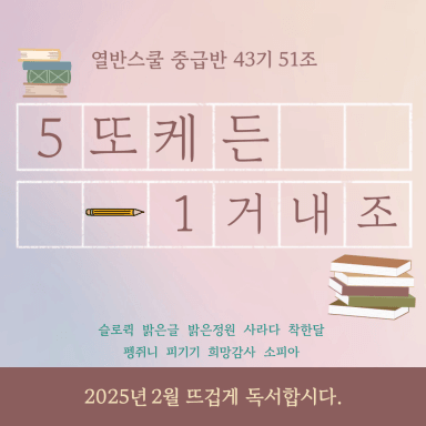 [열중 43기 51조 5또케든 1거내조 슬로퀵] 몰입 독서 후기