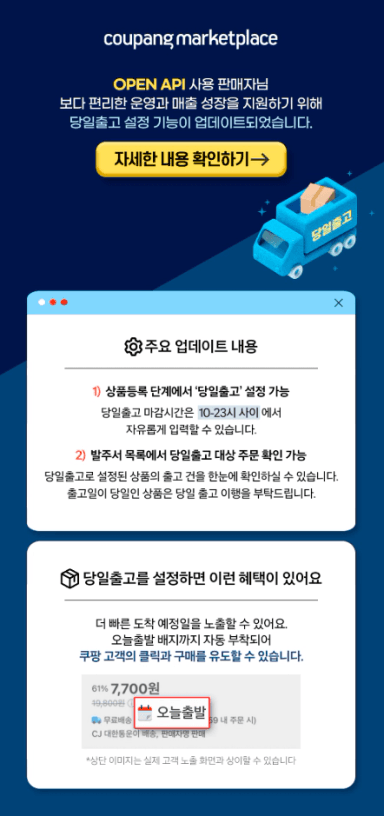 쿠팡 당일출고 설정 질문