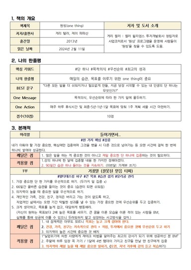 열반스쿨 중급반 원씽 독서후기 [열반스쿨 중급반 35기 44조 푸른하늘]