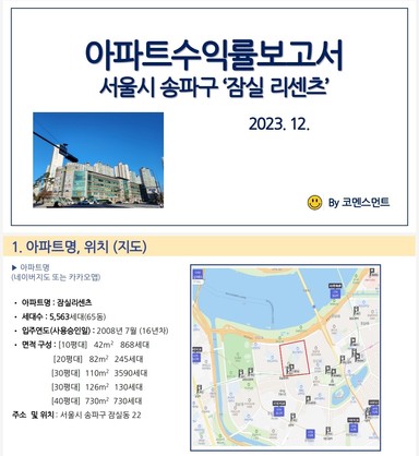 송파구 잠실동 리센츠 아파트 수익률 분석 보고서 (열기 68기 49세 전에 49억 달성하조 코멘스먼트)