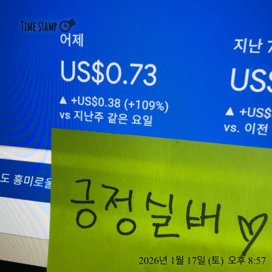 [아쿠아원] 1.26 애드센스 수익 인증 챌린지 6일차 : 11외 완료